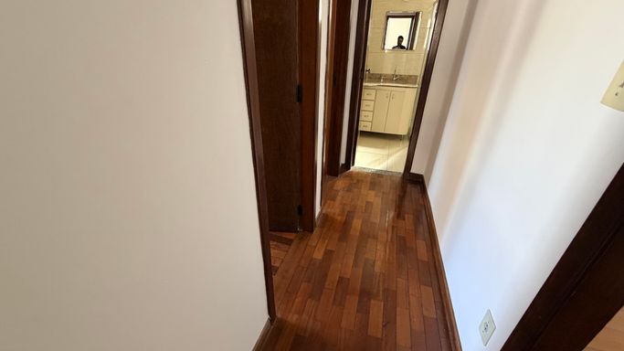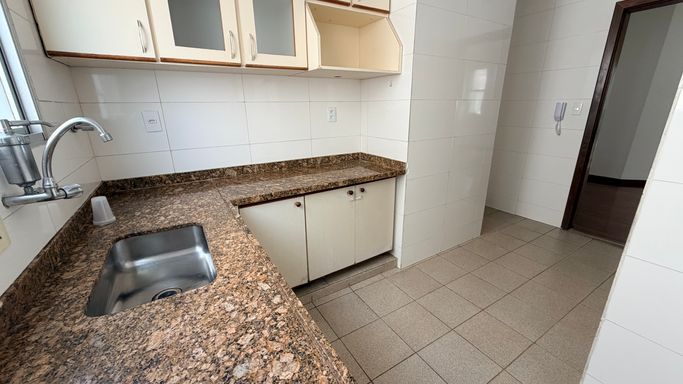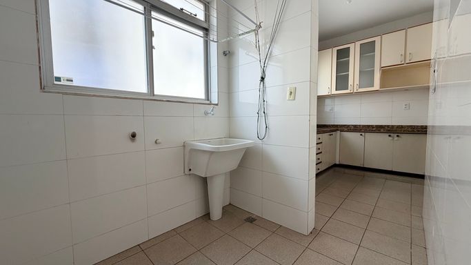 Apartamento com sala ampla, varanda, três quartos com guarda-roupas planejados e um com suíte, banho social com box e armário, cozinha ampla com armários planejados, área de serviços espaçosa + quarto e banho de serviços. Duas vagas cobertas.
