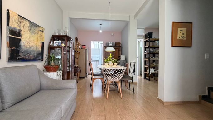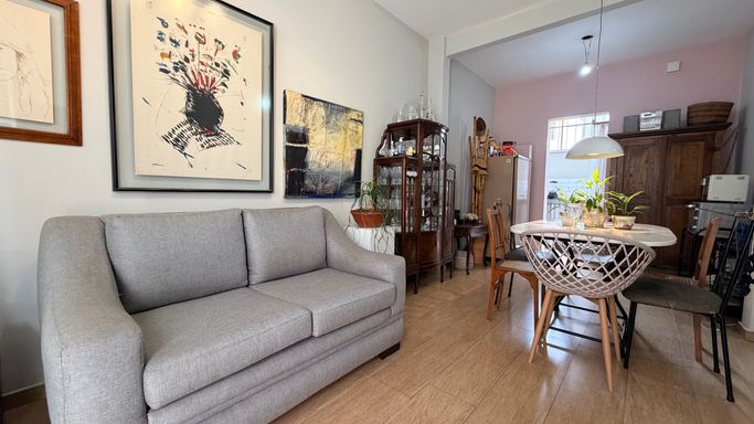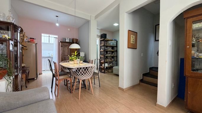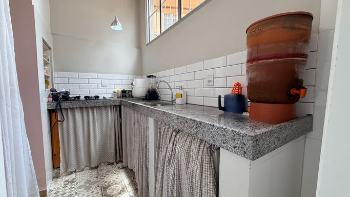 1° Pavimento: Sala ampla para dois ambientes, um escritório reversível, cozinha com área de lavanderia, banho social.
