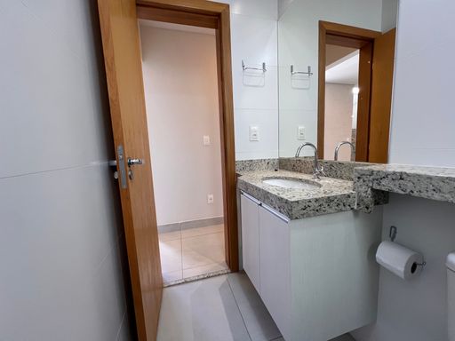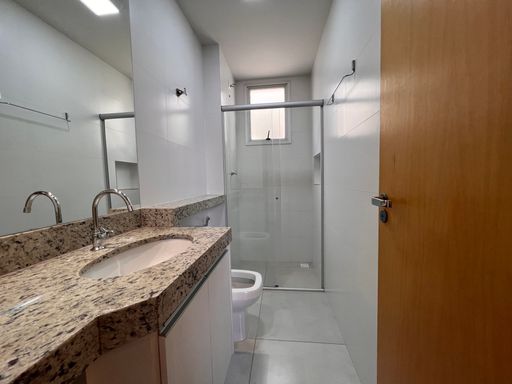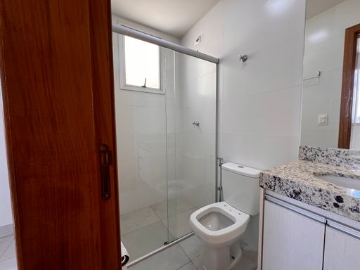 • Banho social com armário, espelho e vidro box