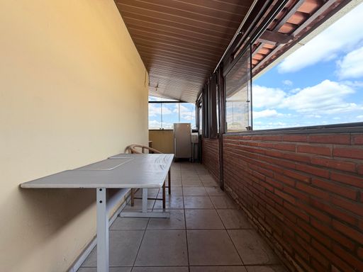 Terraço amplo com churrasqueira - Quartos com guarda-roupas - Cozinha com armários - Duas vagas paralelas, cobertas e demarcadas.