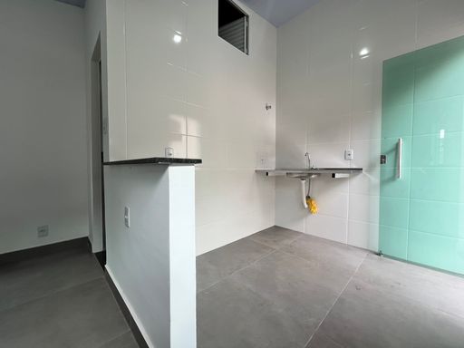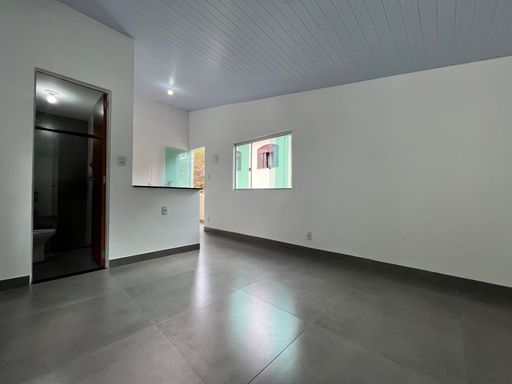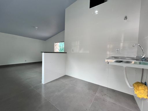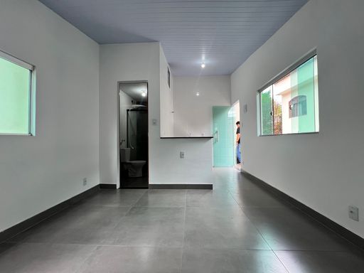 Kitnet com sala conjugada com a cozinha americana, quarto amplo, banheiro com box.