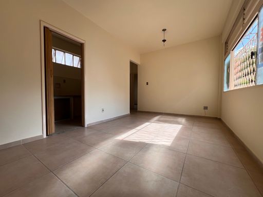 Apartamento com sala ampla para dois ambientes, cozinha com armários, área de serviço, dois quartos sendo um com guarda-roupa e banho social com vidro box.