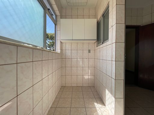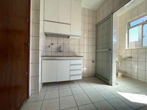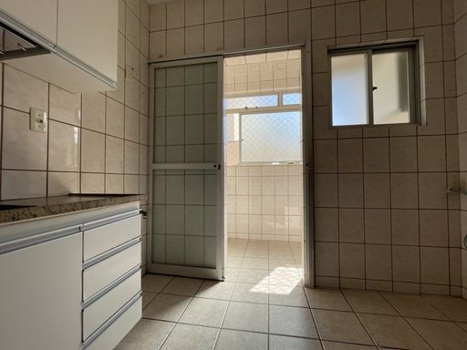 Apartamento com sala arejada, varanda com fechamento em blindex, cozinha com ármários, dois quartos com guarda roupas planejados e ventilador de teto, um dos quartos com suíte, banho social com blindex e área de serviços separada da cozinha.