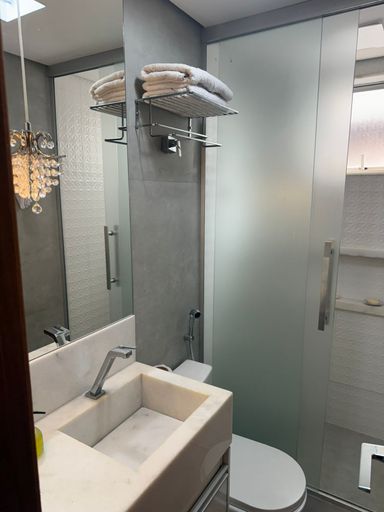 Possui Elevador - Claro, Arejado e Amplo - Cozinha ampla com armários - Quartos com guarda roupas - Ar condicionado - Mesa e cadeira - Cama de casal - Cama e solteiro -Painel - 3 Tvs - Sofás - Móveis - Cook top - Forno - Geladeira - Máquina de lavar roupas - Microondas - Lustres