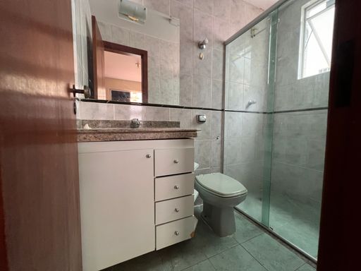 • Banho social com armário e box em vidro