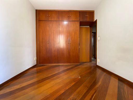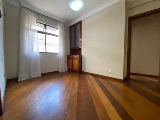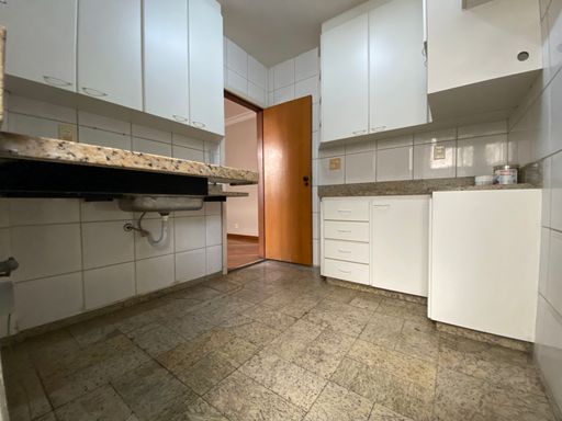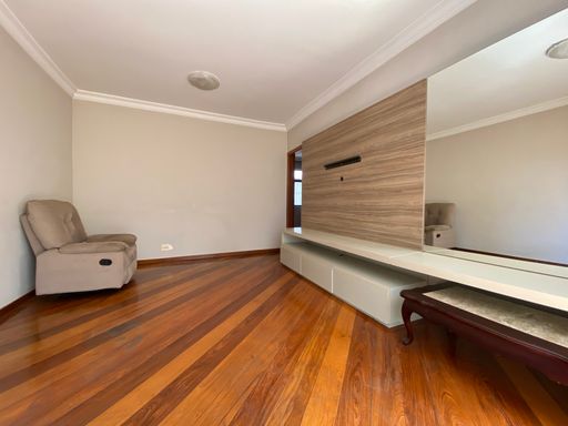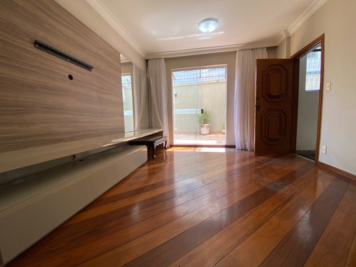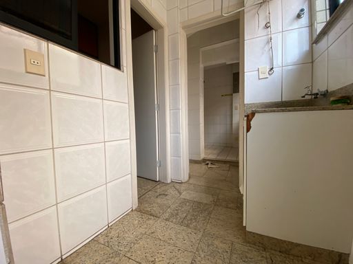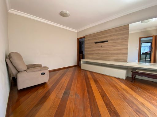 Apartamento com sala ampla para dois ambientes com painel rack planejado, sala de jantar/copa, cozinha com armários, área de serviço individual com duas despensas e um banheiro (DCE), três quartos sendo uma suíte (todos com guarda-roupas) e banho social com vidro box.