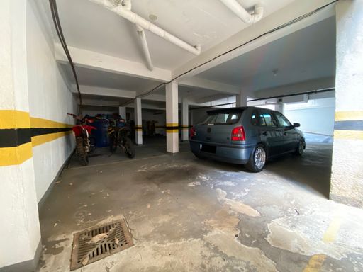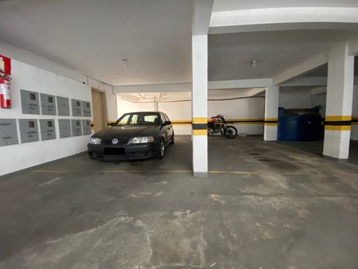 Duas vagas de garagem paralelas, cobertas e demarcadas (capacidade para estacionar até três veículos).