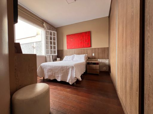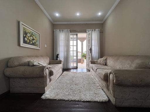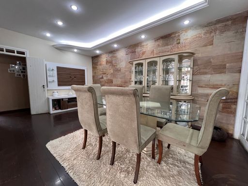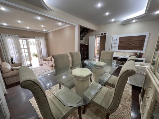 Duas salas, dois jardins de inverno, cozinha com armários, quatro quartos sendo uma suíte com guarda-roupa planejado e banho social com armário e vidro box.