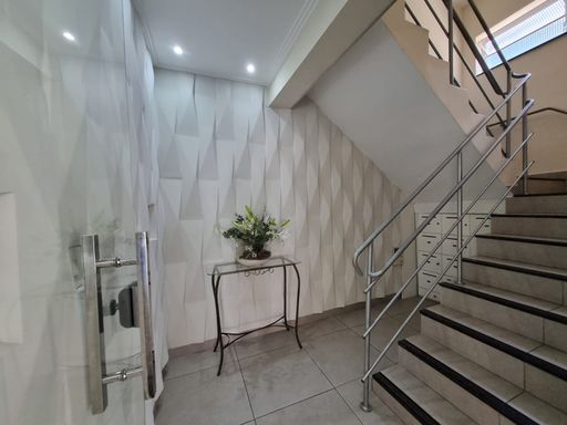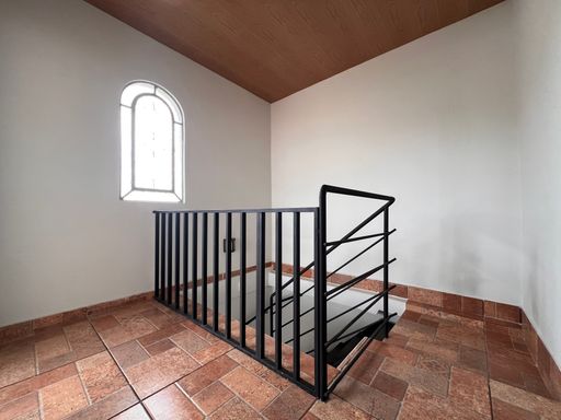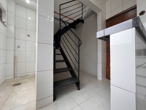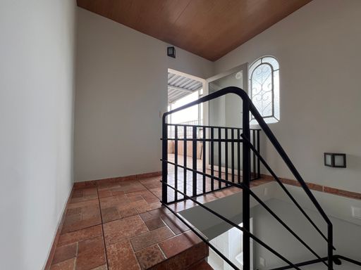 2º Pavimento: Área de escada e amplo espaço externo com fechamento parcial com vidro temperado.