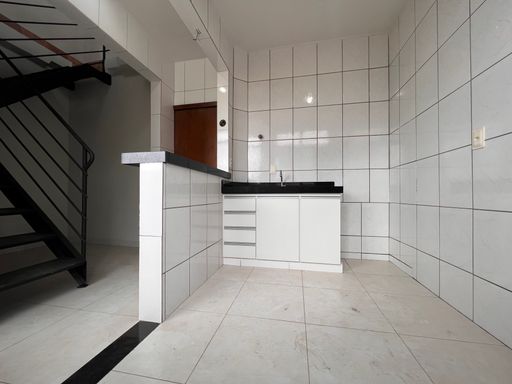 1º Pavimento: Sala para dois ambientes, cozinha com armários, área de serviço, banho social com armário e vidro box e dois quartos com guarda-roupas.