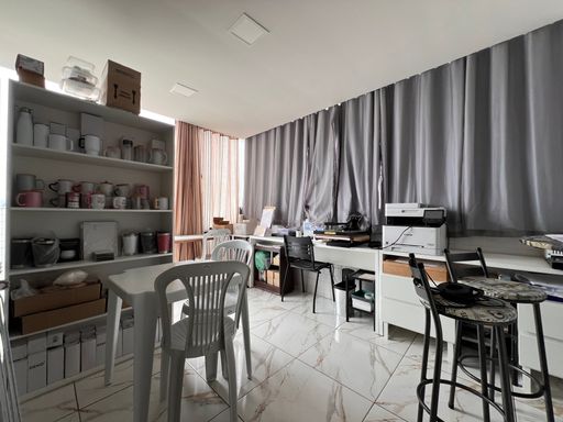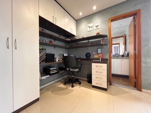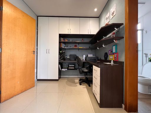 2º Pavimento: Sala com escritório montado, banho social com armário, espelho e vidro box, quarto e área externa.