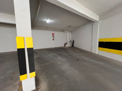 Duas vagas de garagem cobertas, paralelas e demarcadas (possibilidade de estacionar até três veículos).