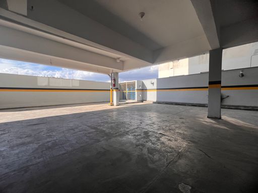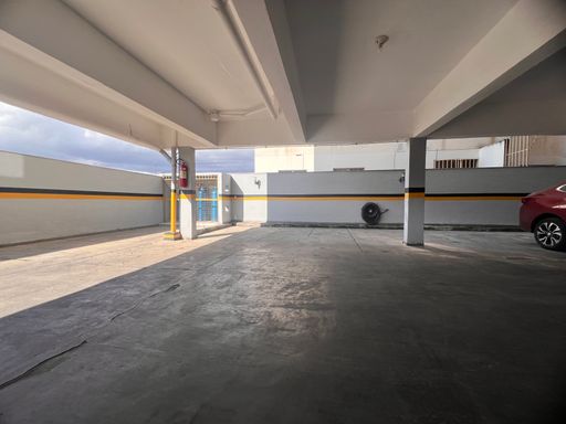 Duas vagas de garagem cobertas, demarcadas e paralelas.