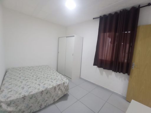 Apartamento linear: Sala ampla, area de serviço ampla, cozinha, banho social, quarto de casal com guarda roupa.